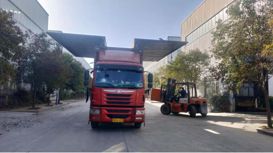 1月13日8点刚上班,一辆40 尺高柜货车停放在了利来的生产区。出口赞比亚代理商的50台玉米脱皮机,准备装柜发货。